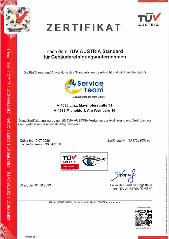 Leistungsverzeichnisses und garantieren hohe Standards, geprüft durch den TÜV AUSTRIA.