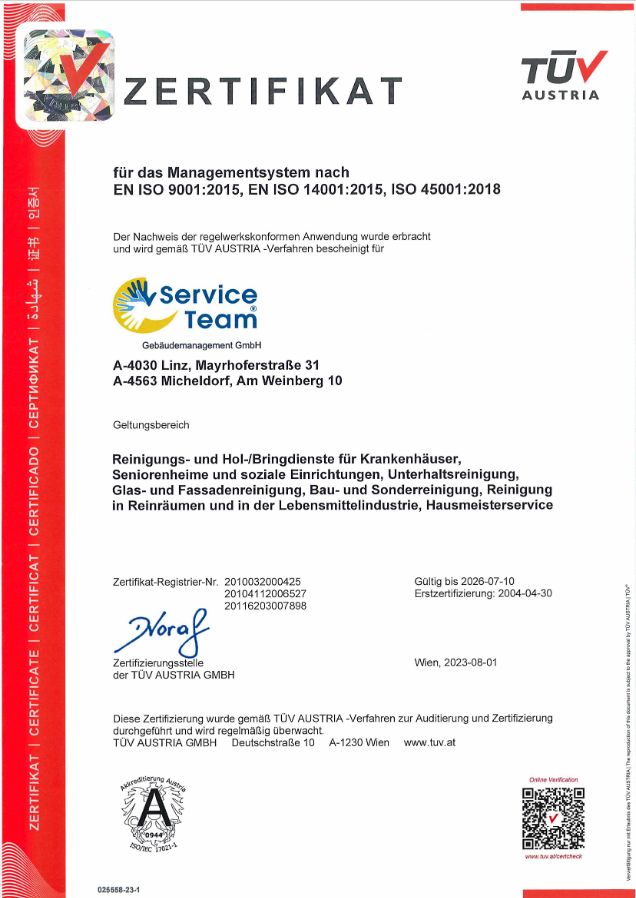 Gegründet im Jahre 2002 von Ursula Krepp, Uwe Krepp und dem heutigen Geschäftsführer Steffen Lyck ist Service Team Gebäudemanagement GmbH mittlerweile einer der marktführenden Familienunternehmen in Oberösterreich im Bereich Gebäudereinigung und Gebäudemanagement. Service Team besteht aus rund 260 Mitarbeitern/-innen, drei Gebäudereinigungsmeistern und einem staatlich geprüftem Desinfektor.